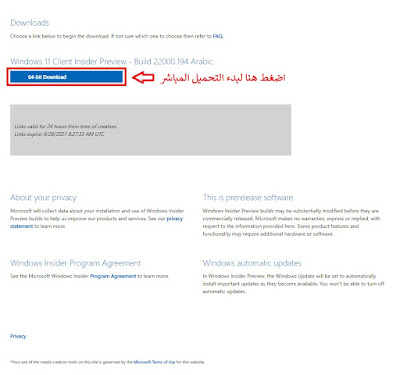 والان قد انتهينا من بدء عملية تحميل ويندوز 11 بصيغة الايزو من موقع مايكروسوفت الرسمي